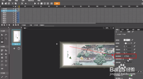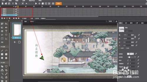 回到舞台,补全所有图层的帧数,为长图元件添加预置动画,如图为“向右移入”