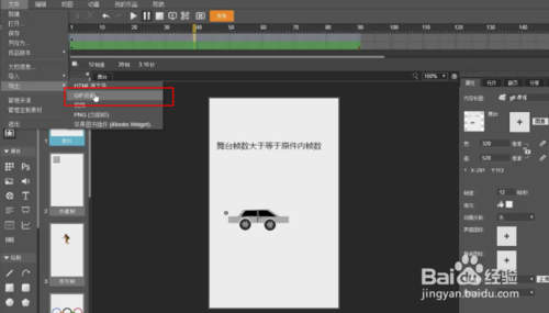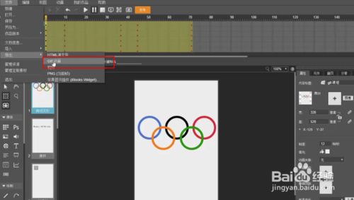 舞台上的曲线变形动画可以导出GIF动画,元件内的曲线变形动画则不可以导出