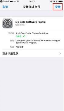 ios11描述文件是苹果手机系统最新的一个升级软件,软件能够将你的手机升级到最新的ios11系统,不过用户需要先安装iOS11描述文件,才能对iOS11进行升级,需要的朋友快来下载体验吧!