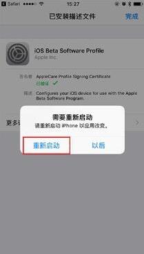 3、下载完成以后点“安装”,按照提示输入手机解锁密码来完成安装,安装完成以后会提示你是否重启手机,这时候点“重新启动”,来重启手机,只有重启手机才能进行下一步。