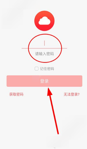 1、下载好移动彩云app之后,新用户请点击“获取密码”;