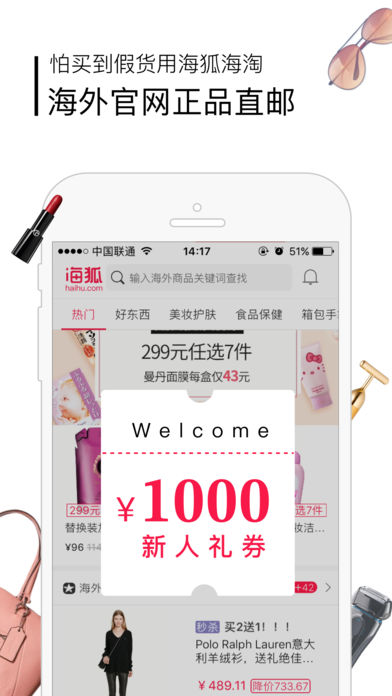 购遍全球:日韩的化妆品,物美价廉;德国的电器、厨具,全球一流;齐聚全球好货,就来海狐淘!品质保证:通过海狐买到的商品,是经过国外更严格的审核标准生产,让您体验简单、舒心、有趣的一站式代购旅程!