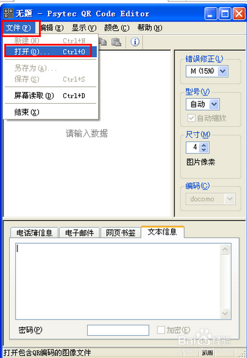 2.接着点击“电脑端二维码识别工具”界面中的“文件”→“打开”项。