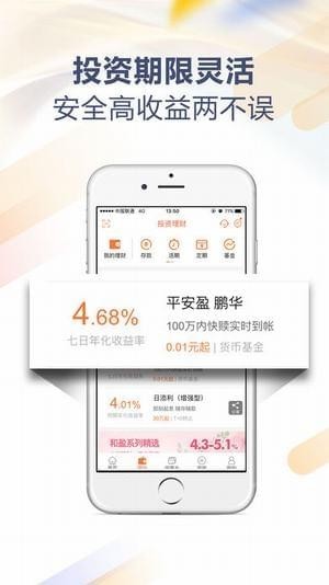 定期产品:投资期限灵活30-365天,安全高收益两不误基金频道:两千余只基金产品,申购、赎回、定投,操作便捷黄金账户:全面支持I、II类户黄金买卖及定投交易