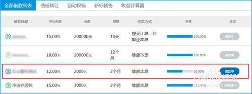 2.投资期限多选资金灵活转让:1-12个月理财期限可选,债权转让无时间限制