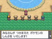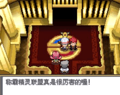 击败四天王与冠军,成为了新的冠军,大木博士也来祝贺 (空木博士怎么不来呢,好歹咱是同一个地区的呀)