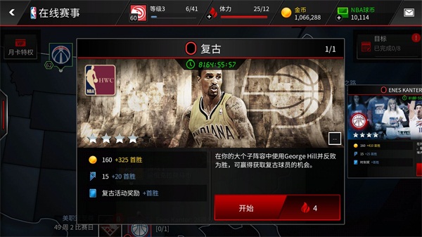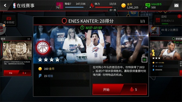 在在线赛事界面,你可以找到名称为“Enes Kanter:28分”的赛事活动,点击“开始”进入并参加挑战。