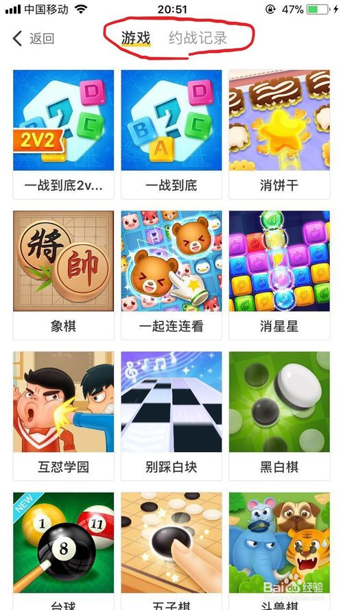 3、进入此页面后,我们会到最上方看到【游戏】和【约战记录】,而我们曾经一起玩的小伙伴就在【约战记录】里统统可以找到。