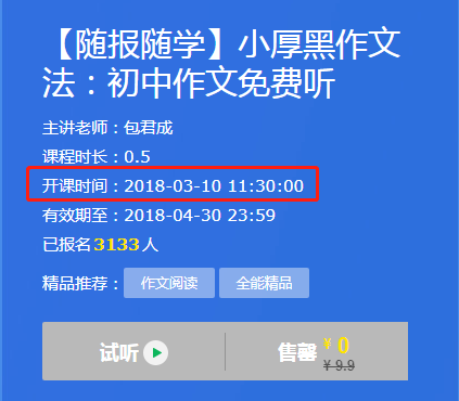 课程标题下方就是开课时间。请在开课之后参加课程的学习。