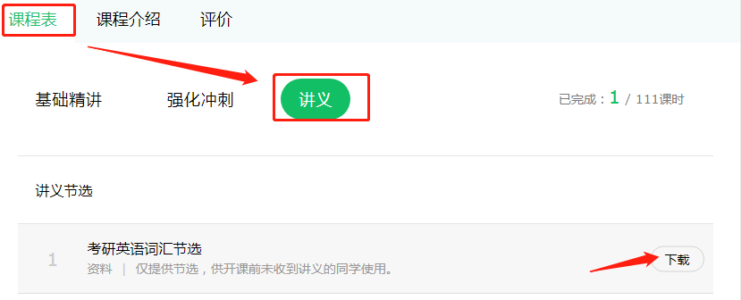 讲义的下载方法:【我的课程】-【找到相关课程】-【课程表】-【讲义】-【下载】