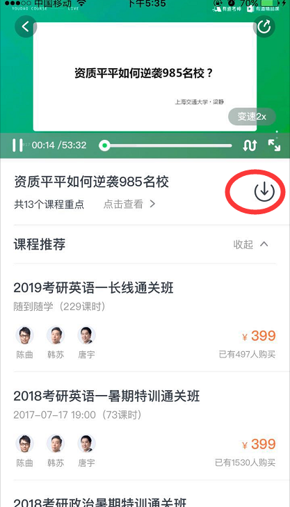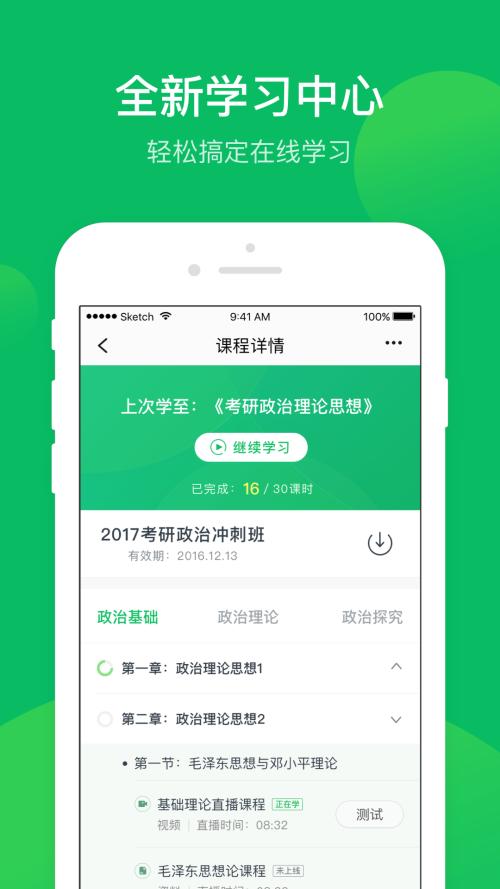 ● 强大产品功能:离线缓存,无限次视频回放随时随地放心听课;标记重点,复习效率飞速提升;分享课程,好课大家一起学。