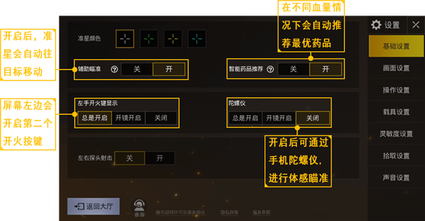 游戏中在打远处敌人的时候,用手动跟枪很不准,压枪也不好压,这时如果用陀螺仪就非常方便,不过这个要看手机配置。