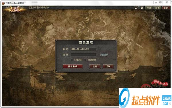 1、进入游戏后,第一次玩的话选择大区,建立角色2、注册账号,已有账号的登陆即可