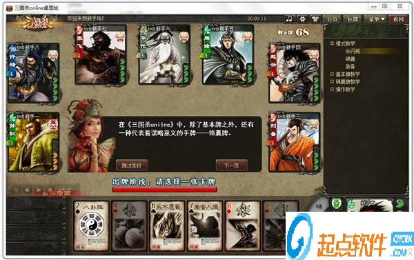 三国杀online网页版是一款热门的卡牌游戏,三国杀网页版集合历史、文学、美术等元素于一身,并融合了西方卡牌游戏的特点,玩家将扮演中国三国时期的人物,以身份为线索,以卡牌为形式,合纵连横,经过一轮一轮的谋略和动作获得最终的胜利。