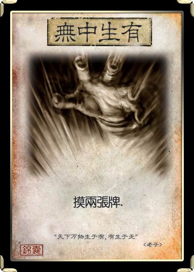 三国杀在游戏牌名称的设计上力求做到“语出必有典”,例如【乐不思蜀】牌下注明“问禅曰:‘颇思蜀否?’禅曰:‘此间乐,不思蜀。’”简单的几句话就讲述了乐不思蜀的典故。一张看似简单的【无中生有】,牌下的注释却是引自博大精深的《老子》:“天下万物生于有,有生于无。”这些注释在资料庞杂的电脑电视游戏中也许不会被玩家所关注,但是当这些文学的养料,出现在一张小小的卡牌上,却赋予了这张卡牌丰富的教学意义以及厚重的文化底蕴。