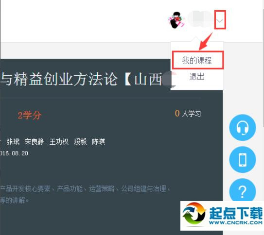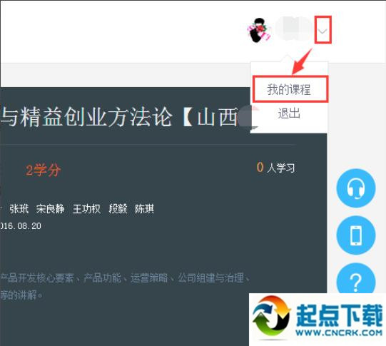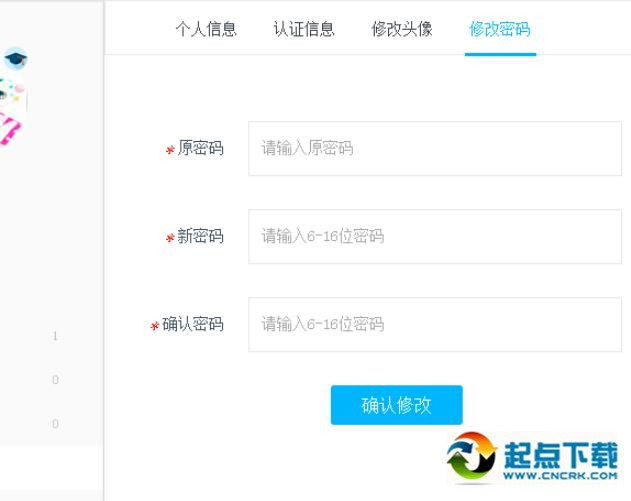 3、登录成功就点右上角头像后面的小箭头选择【我的课程】进入信息设置界面,打开左侧最下面的“个人设置”就会有“个人信息、认证信息、修改头像和修改密码”。我们可以在“个人信息”里绑定邮箱或手机号,这样以后找回密码就方便多了;然后在“修改密码”里设置属于自己的密码登录网站。