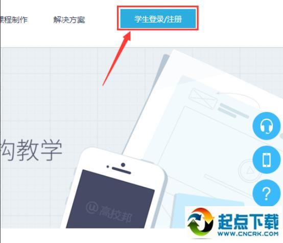 5、然后,我们就可以进入登录界面,点右上角的【学生登录/注册】成功登录。