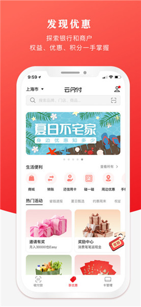 云闪付APP,银行业统一移动支付战略产品,银行卡管理一步到位,银行卡优惠一目了然,打折优惠一网打尽,让您省钱省心的移动支付管家。