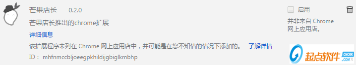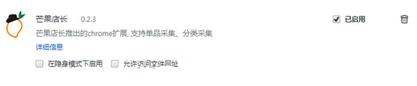 6.在【设置】-【扩展程序】里找到芒果店长,勾选下启用