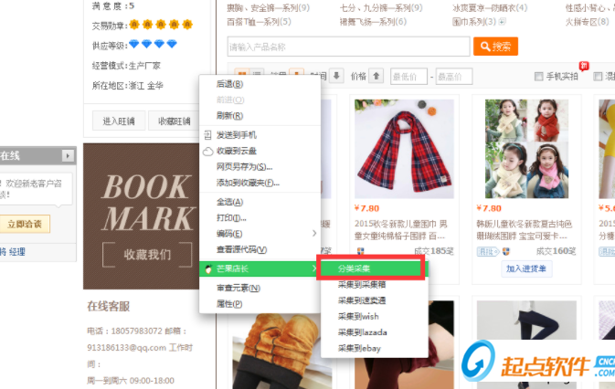 ①打开一个店铺的分类页面,在空白处,点击右键,然后点击采集到采集箱,这里以1688的店铺分类页面为例。