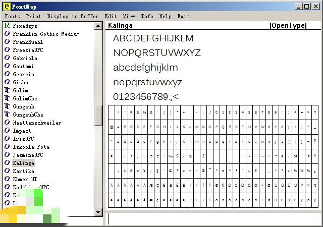 FontMap可以显示本机安装的所有字体!而且还可以显示关于字体设计者的详细信息