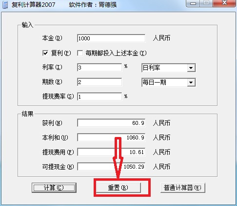 4、若是计算错误,可点击下方重置,清空数据,重新计算。