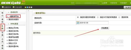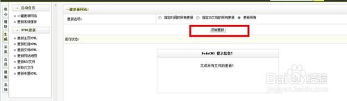 最后,我们在生成选项卡下点击一键更新网站,然后在右侧出现更新选项,点击开始更新,如下图所示。