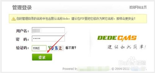 打开你的织梦dedecms后面登录页面,输入管理员帐号和密码,然后点击登录,如下图所示。