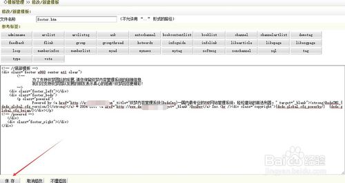 点击打开默认模版后,这里有很多模版,我们找到名叫footer.htm的选项,然后点击后面的编辑按钮,如下图所示。