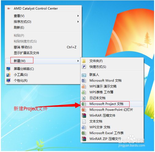 安装完成之后在桌面上新建一个 Project 2013的文档