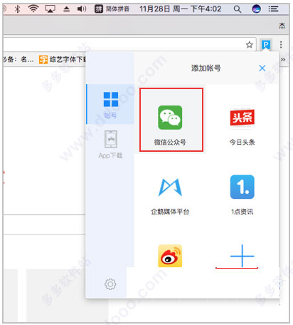 1、登录新媒体管家帐号后,点击添加按钮添加帐号。