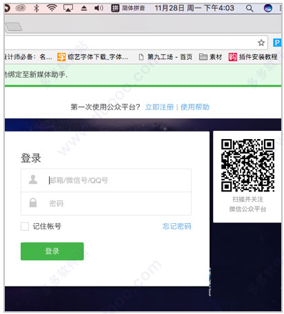 3、在登录页面登录您的帐号(如微信公众号),成功后即可绑定。