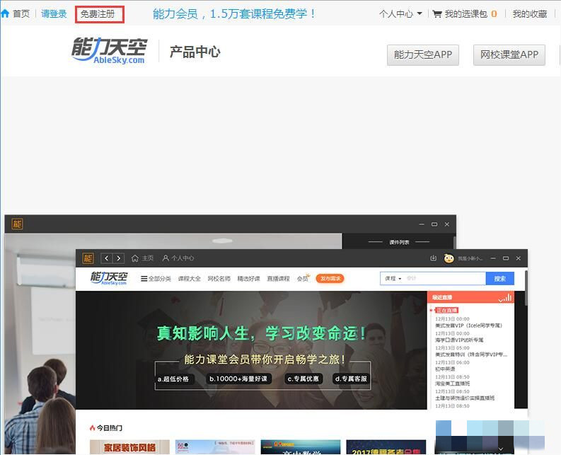 小编还没有能力天空账号,这一次就给大家演示一下怎么注册能力天空账号吧。在能力天空网站上点击免费注册;