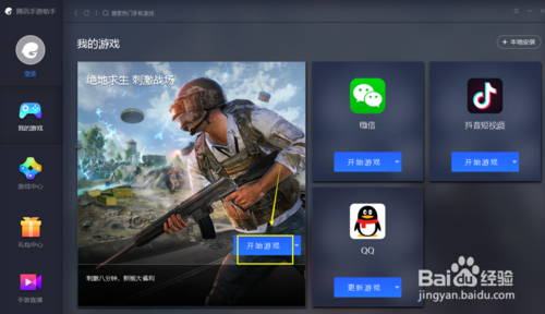 今天小编以刺激战场为例教大家双开,先点击开始游戏按钮,如下图所示