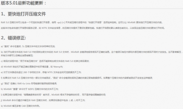 1.新的RAR5.0压缩文件格式;2.0选项或命令行中使用-ma开关创建RAR5.0压缩文件;