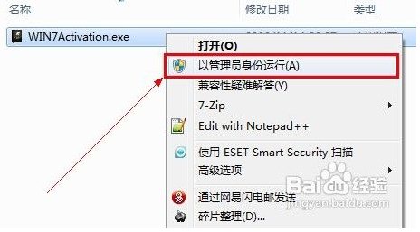 可以实现Win7系统激活的软件有很多,但经过试用,WIN7 Activation是最好用的一个,故本文就以WIN7 Activation为例进行说明。先将Windows 7系统激活工具WIN7 Activation V1.7软件下载到电脑中,下载完成后将其解压。进入刚刚解压的WIN7 Activation文件夹,里面会有一个WIN7Activation.exe的文件,对着这个文件点击鼠标右键,选择“以管理员身份运行”