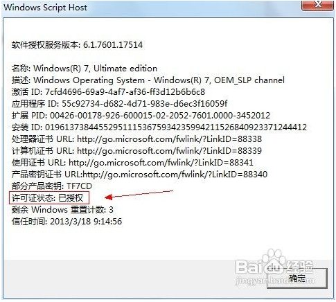 方法一.直接打开WIN7 Activation点击"点击验证"(推荐);方法二.在"运行"里输入 slmgr.vbs -dli 并回车;