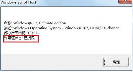 再到运行框中输入slmgr.vbs -dli,查看是否也是“已授权”状态,如果这两步操作后均显示“已授权”则表示系统激活成功