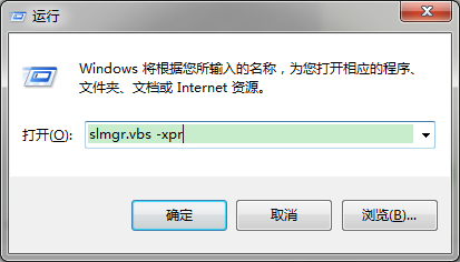 在运行输入框中输入“slmgr.vbs -xpr”;