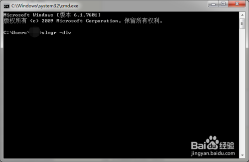 在命令提示符中输入“slmgr -dlv”,并点击回车;