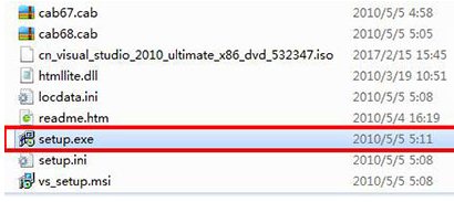 注意:本站提供的VS2010旗舰版已经破解,不需要输入密匙,直接安装即可使用。1.文件下载过来之后是ISO文件,我们直接解压即可。解压完成之后打开,找到“setup.exe”,双击运行。