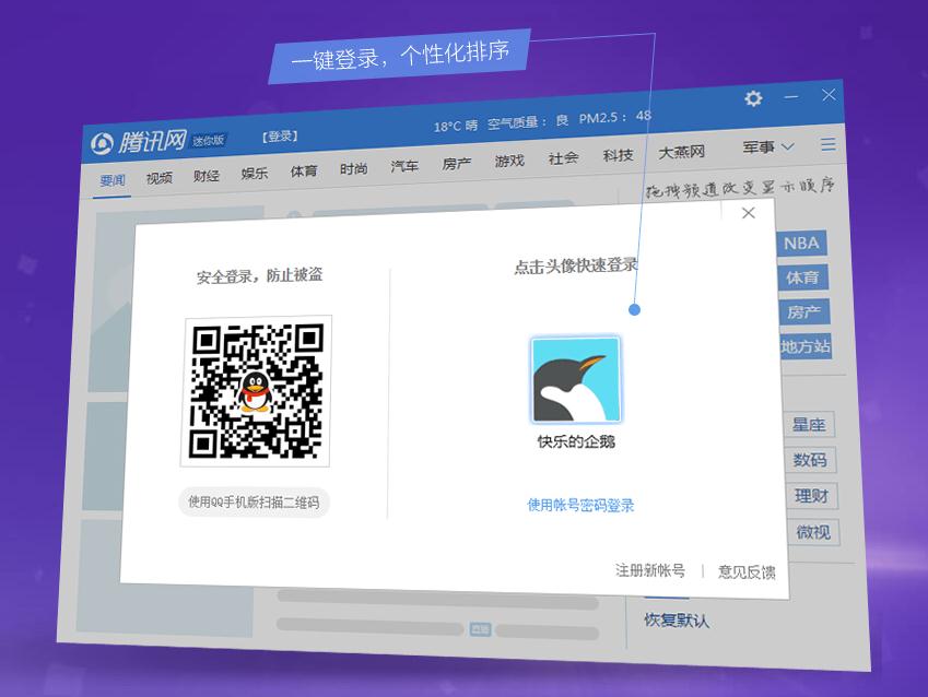 这时候我们会看到在最上面有一个登录后显示腾讯新闻迷你版