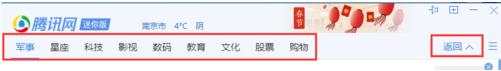 在打开的腾讯网迷你版窗口,从图中可以看到,最上面的导航栏就是频道分类信息