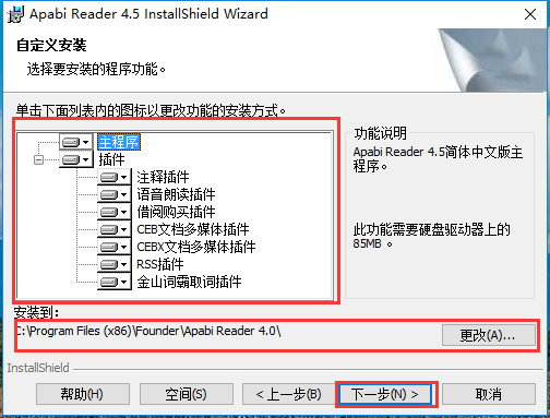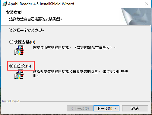 1、下载方正Apabi Reader最新版程序安装包,双击应用程序打开安装向导,安装时可以选择【快速安装】(安装步骤较简略)或者【自定义安装】(安装需要自己一步一步进行设置),小编选用【自定义安装】演示,单击【下一步】