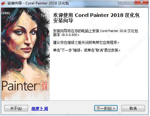 11、运行Painter 2018汉化补丁,点击下一步,然后选择软件安装安装目录安装即可完成汉化