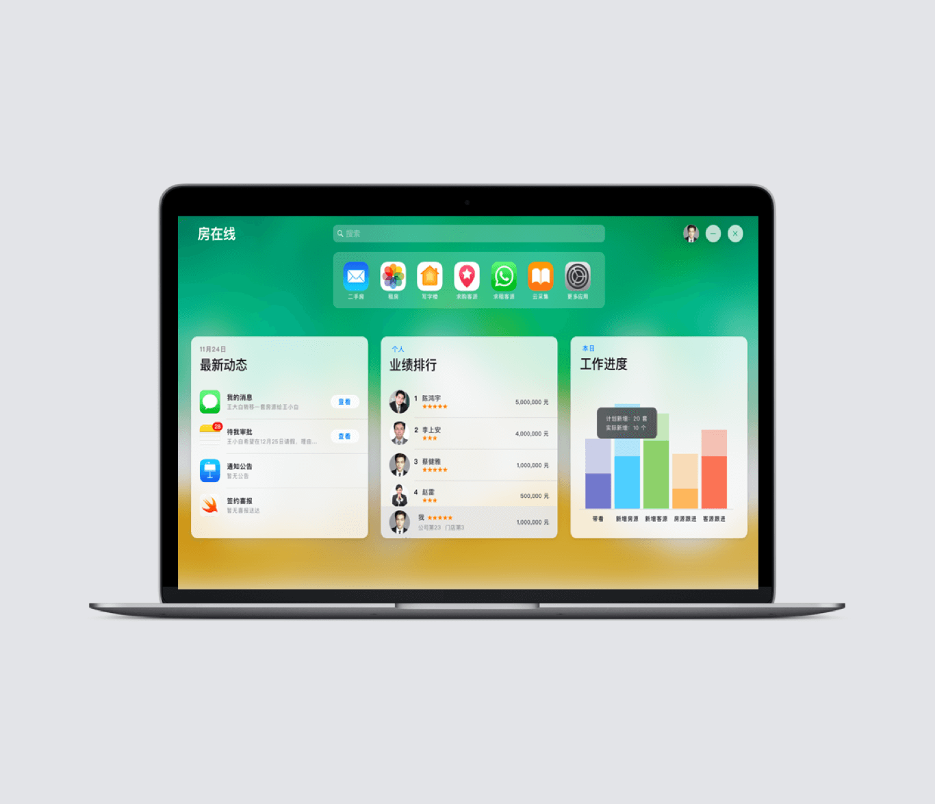 有了房在线ERP,你的公司将直接拥有专属电脑端官网、移动端官网、微信公众号和小程序等整套专业的对外展示平台。焕然一新的公司官网,不但能提升你公司的品牌实力,还能让你在网上获得更多的意向客户。还等什么?快联系我们来定制你的专属官网吧!