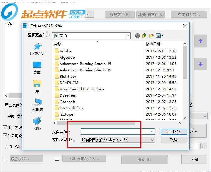 7、添加文件,提示您找到“所有图形文件(*.dwg*.dxf)”将CAD的图纸转换到PDF