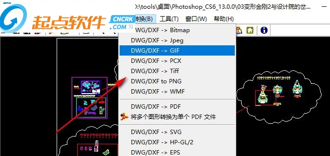 3、 DWG、DXF、DWF 转换为 WMF、BMP、GIF、JPG、TIFF、PNG、TGA、PCX