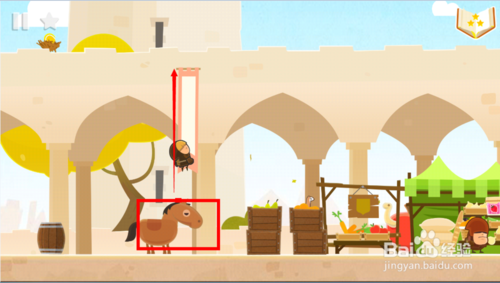 那个问号是什么呢?就是那个牛奶旁边那个人,等他走开喝牛奶的时候会有个古筝点击一下他就掉下来,你再爬上去点击就OK了