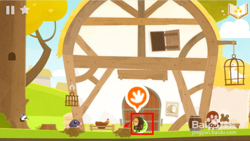 点击上面的小鸟,小鸟窝哪里有个金币,再点击2个水果箱里的松鼠